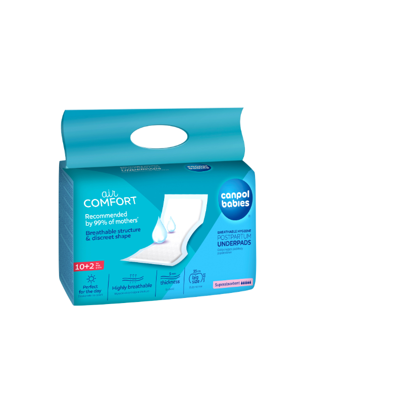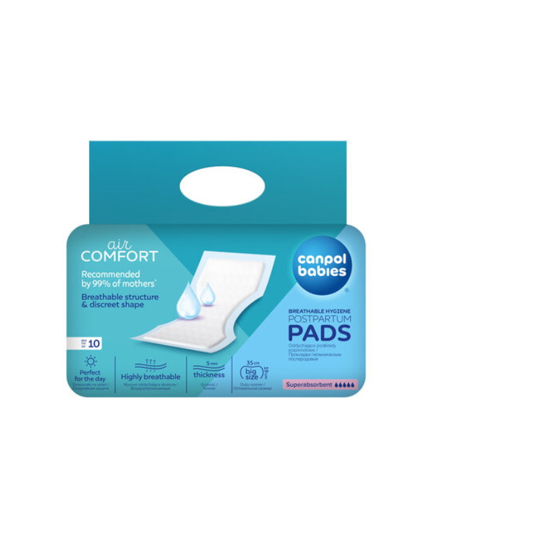 Breathable Hygiene Postpartum Pads for women during childbirth. The soft, completely breathable natural outer shell does not stratify and does not stick to the skin. A wide adhesive strip keeps the foundation in place. The contoured shape provides comfort while wearing and protects against dirt. The thin structure ensures discretion of wearing. The gelling insert quickly absorbs and retains moisture inside the foundation. 10 pieces in the package.