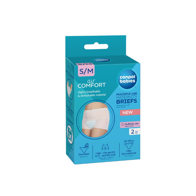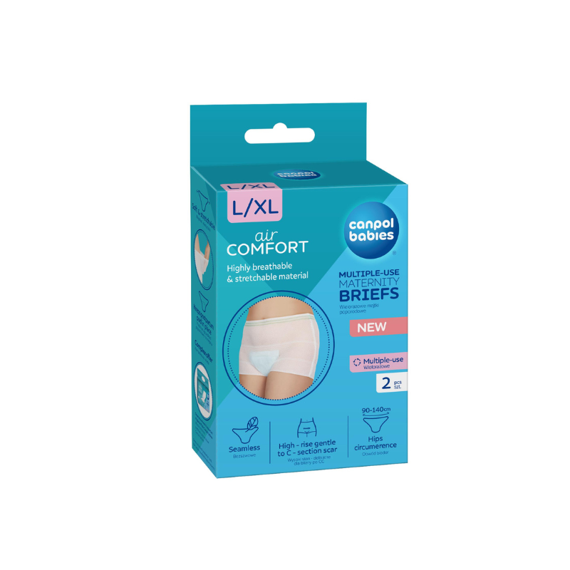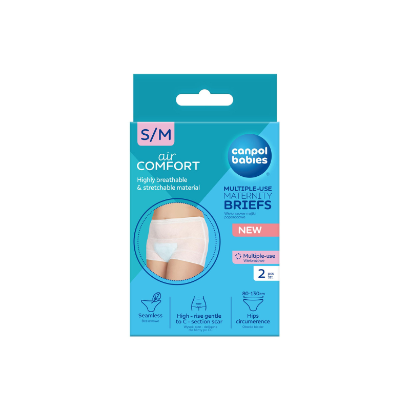 Canpol babies mesh postpartum briefs are dedicated for women mainly in the postpartum period, especially in the first days after giving birth. They are made of mesh, which does not irritate the skin and allows air to flow freely. Breathable postpartum underwear facilitates and accelerates the healing of wounds, both after physiological delivery and after Caesarean section. Mesh postpartum briefs perfectly hold the postpartum pad in place, ensuring comfort of use. They are very flexible, soft and seamless. The high waist is gentle on the C-section scar. Canpol postpartum mesh briefs are reusable and can be washed by hand. The package contains 2 pieces.