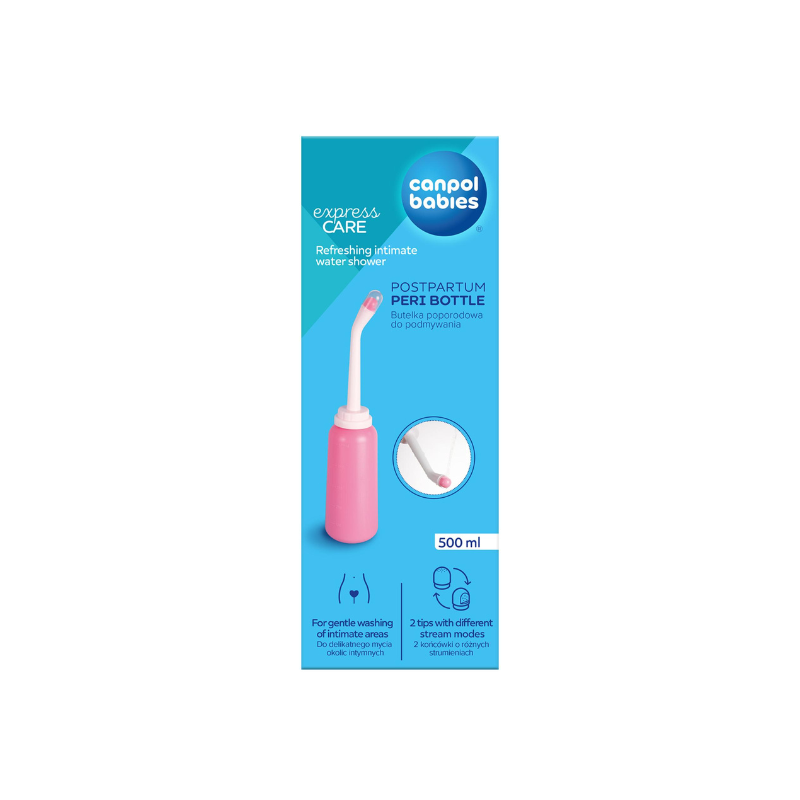 The Peri Bottle for washing of intimate areas facilitates perineal care when using the toilet and replaces the traditional bidet in many situations. It is great as an extra support for daily hygiene, during pregnancy and after birth, during menstruation or when travelling. The bottle is light, soft and easy to squeeze. With a capacity of 500 ml, you can wash thoroughly with just one refill of water. The neck of the bottle can be removed and folded for easy storage. A plastic top cap is included for hygienic protection and a pouch for convenient storage.